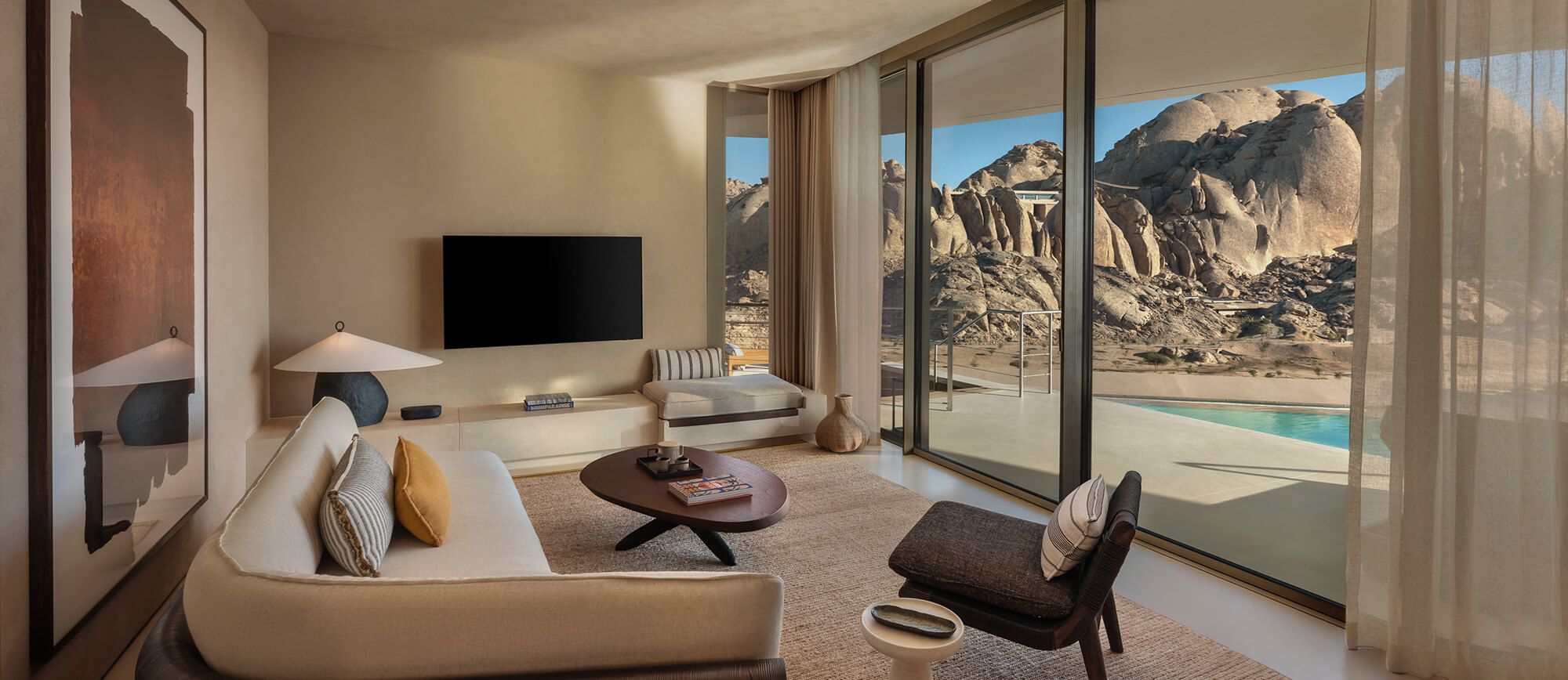 From the moment guests arrive, transported across the landscape by electric vehicles, there is an instant sense of peace. The desert does not feel empty; it feels eternal.